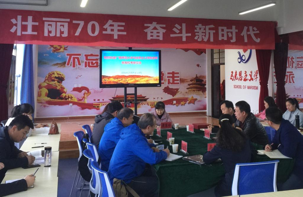 10月15日上午,应bevictor伟德官网邀请,广西师范大学马克思主义公司党委书记何少禄一行6人来校考察交流,并座谈交流。公司负责人主持座谈会,部分教师参加座谈。