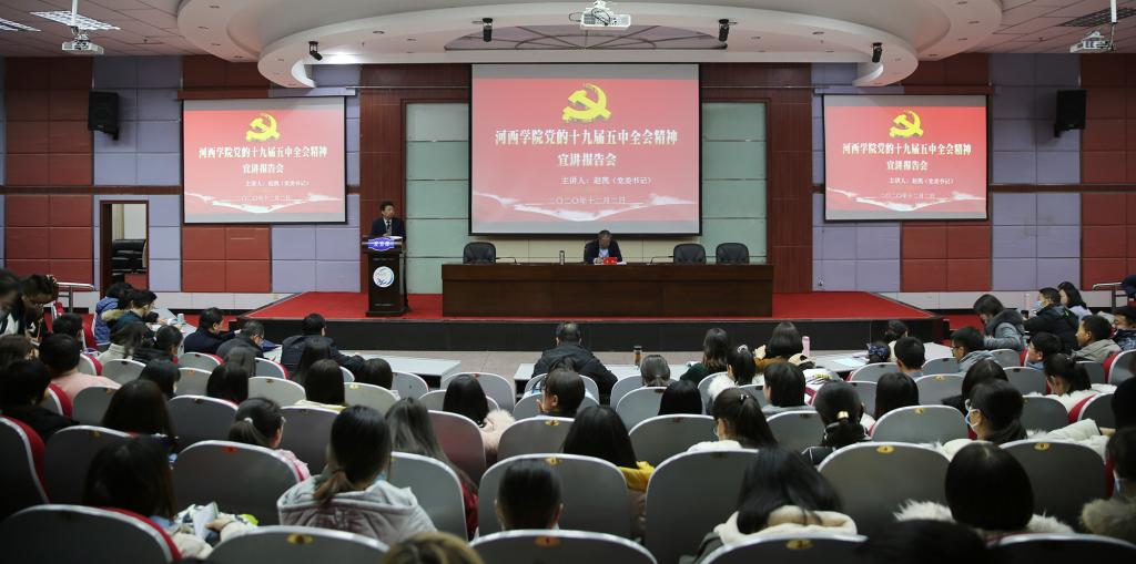 12月2日,河西公司党委书记赵凯在图书馆报告厅宣讲党的十九届五中全会精神,马克思主义公司党总支书记蔺海鲲主持报告会,公司相关部门负责人,bevictor伟德官网全体师生参加宣讲会。