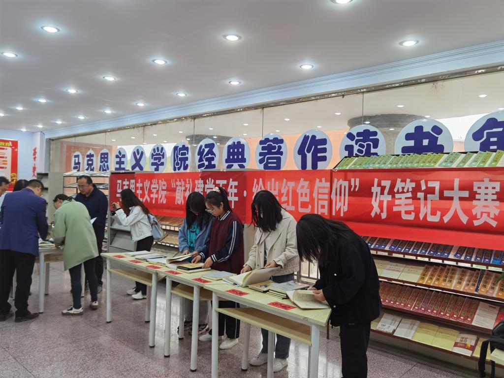 为贯彻落实习近平总书记在党史学习教育动员大会上讲话精神,营造浓厚学习氛围,充分调动学习积极性。bevictor伟德官网于2021年4月23日在三教二楼读书角举办了以“献礼建党百年·绘出红色信仰”为主题的好笔记比赛。