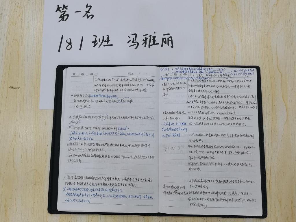 自2021年4月14日发起活动,历时一周,收到有效投稿笔记45份。此次评选秉承客观、公正的原则,参照笔记的书写设计,知识概括度以及学习思路创意等多方面标准,最终评选出了10本优秀课堂笔记。 本次比赛充分展现了马院员工优良的教风学风。