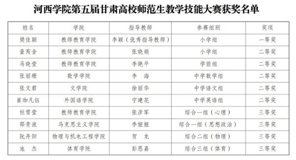 公司学子在第五届甘肃高校师范生教学技能大赛中取得佳绩